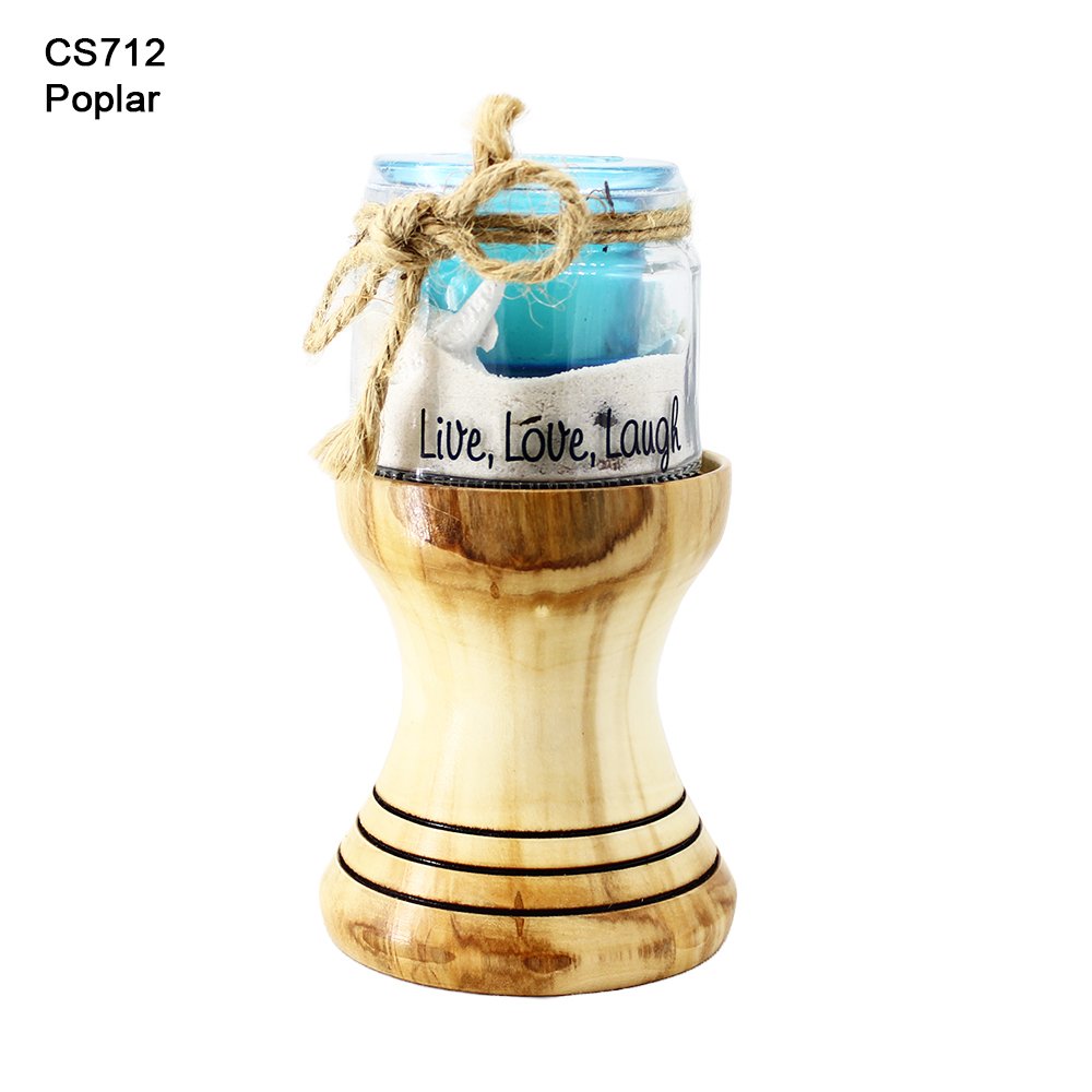 It will hold up to a 3″ diameter jar or pillar candle. It measures 4″ tall. Candle not included.