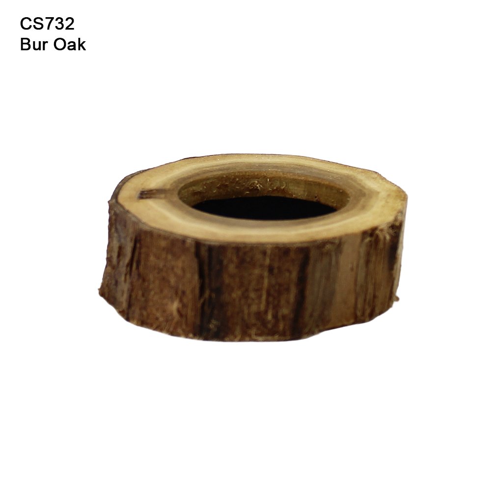 Bring a touch of the outdoors into your home with this rustic bur oak wood slice votive candle holder. Crafted from a natural cross-section of solid wood, this piece highlights the beautiful grain, organic shape, and bark edge that makes it unique. The simple, earthy design pairs perfectly with a glass votive candle for a warm and inviting glow.